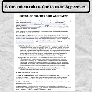 Salon Independent Contractor Agreement Template Hair Salon Barber