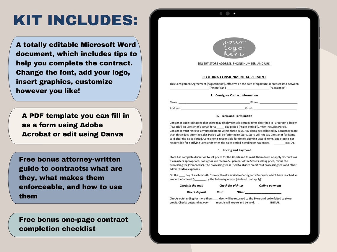 Consignment Shop Agreement Template Digital Download From Canva Etsy