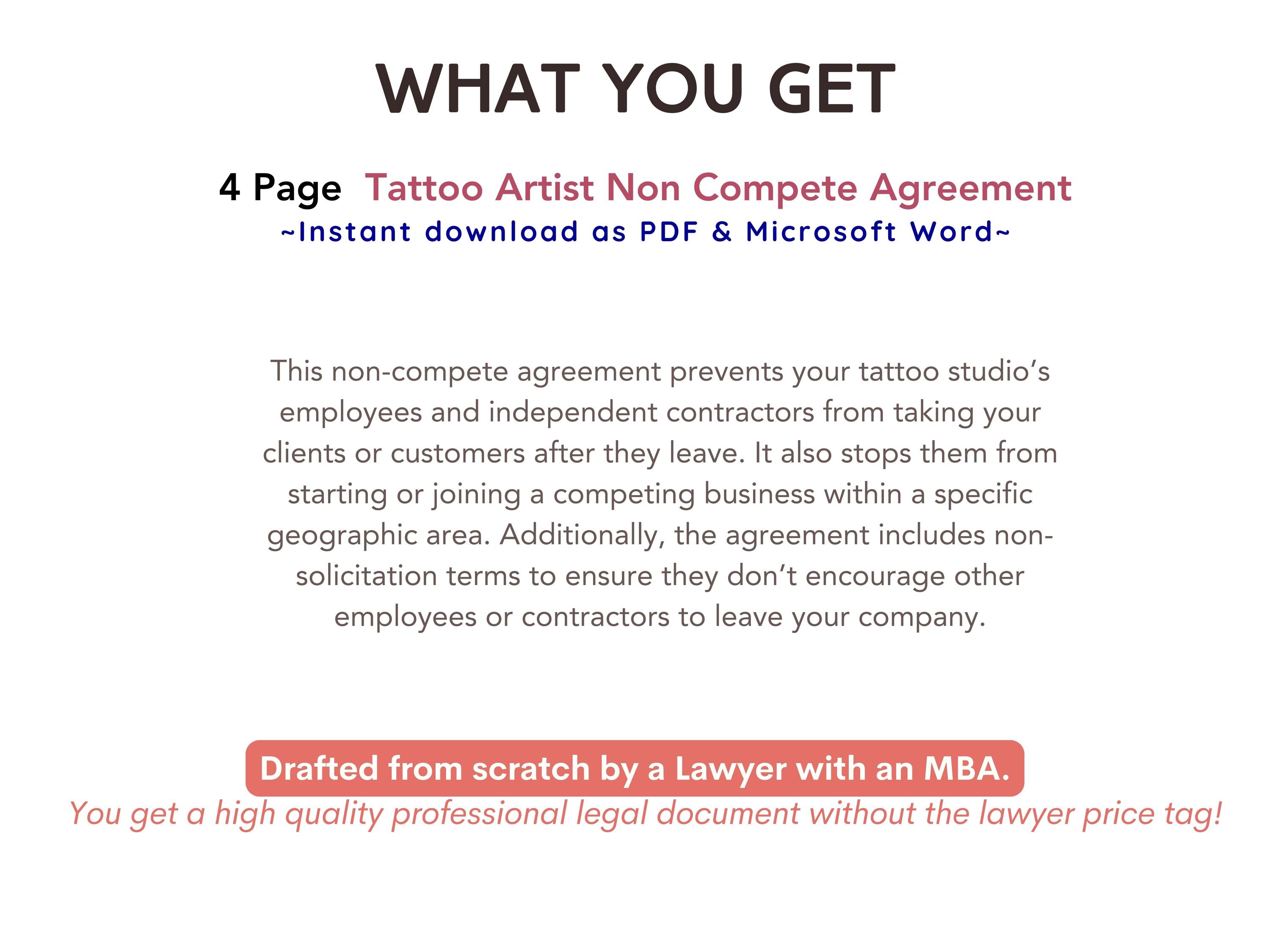 Tattoo Artist Non Compete Agreement Contract Template Tattoo Studio Non
