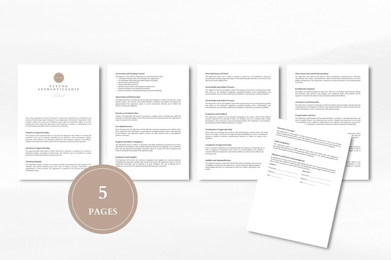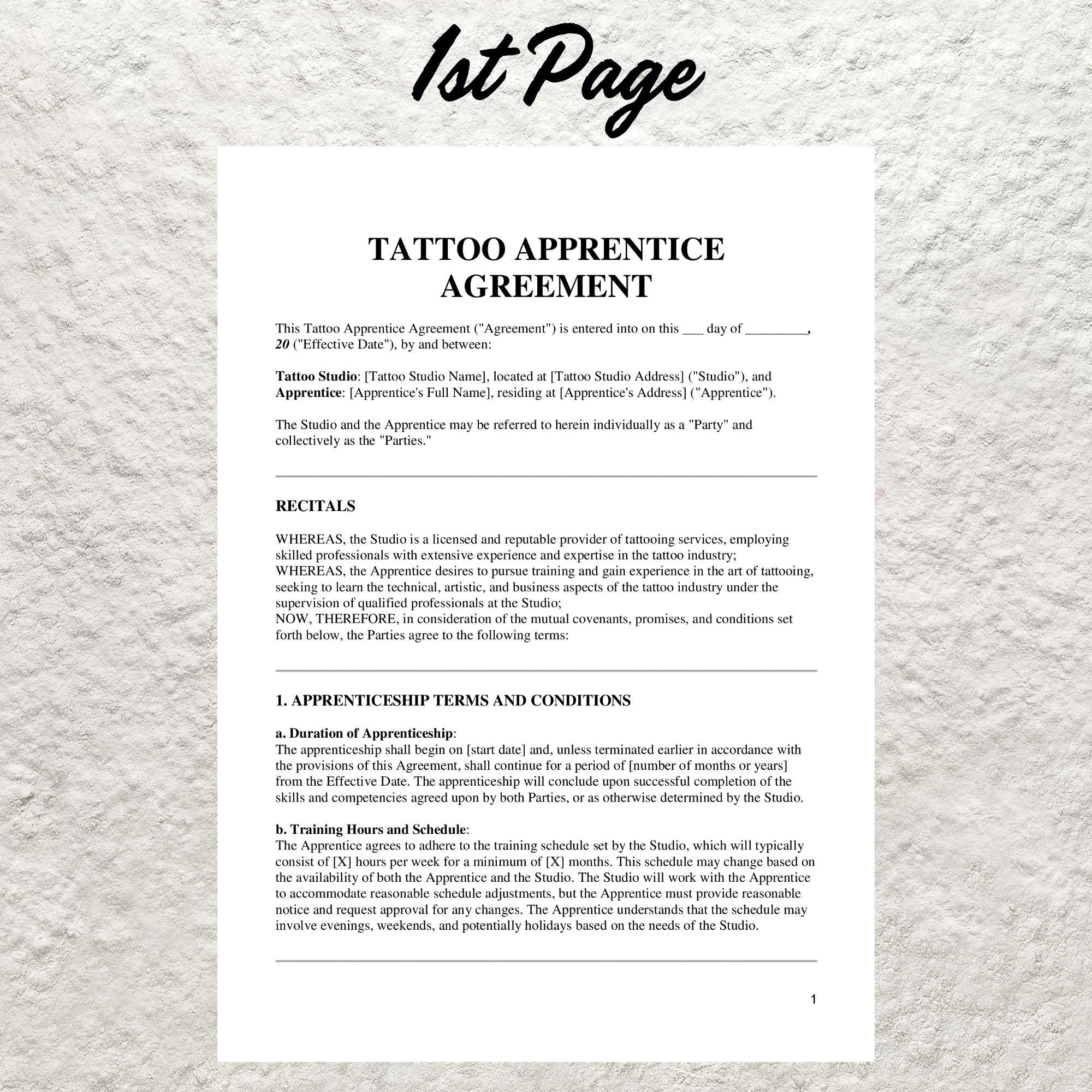 Tattoo Apprentice Contract Template Editable Tattoo Artist