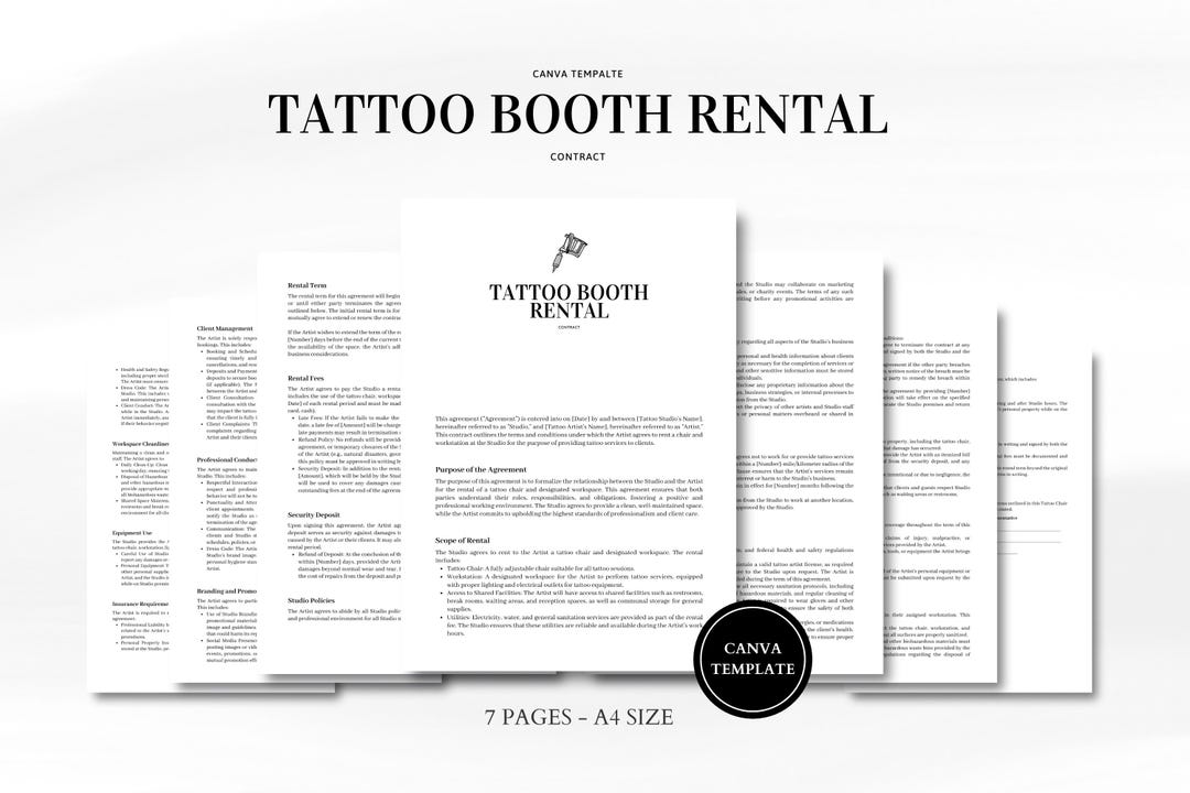 Tattoo Chair Rental Agreement Canva Template Editable Studio Artist