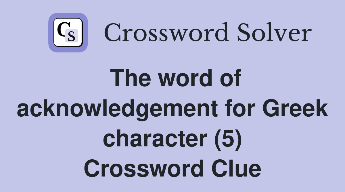 The word of acknowledgement for Greek character (5) Crossword Clue