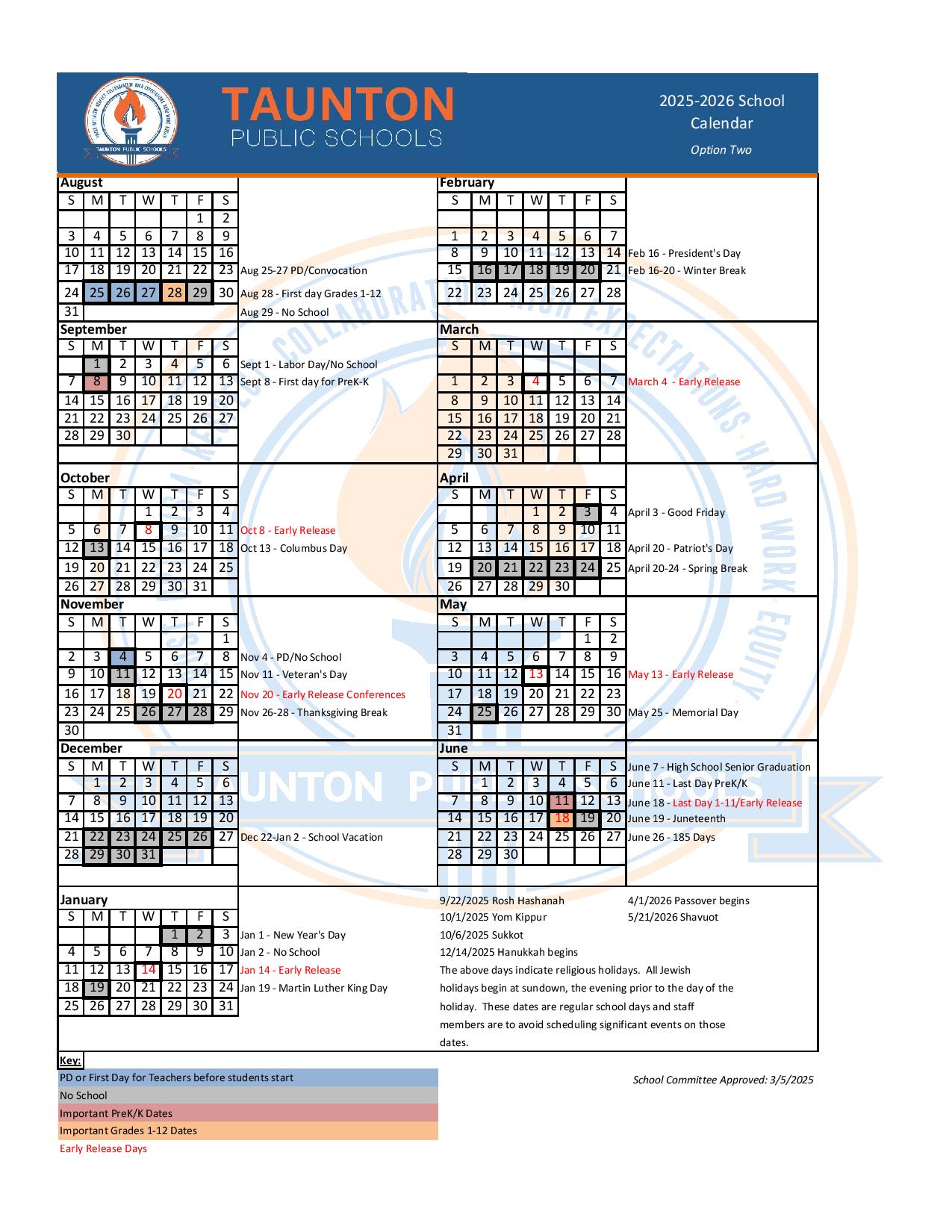 Taunton Public schools calendar 25 26 Revised PDF EduCounty