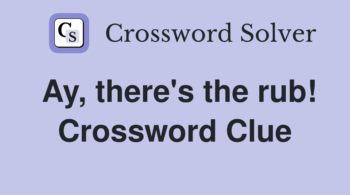 Ay there #39 s the rub Crossword Clue Answers Crossword Solver