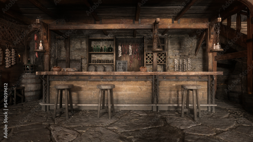 Medieval tavern interior concept art Stock Illustration Adobe Stock