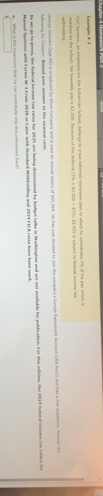 Solved: Chapter 4 Homework Part Example 4 2 Carl Jamison an employee