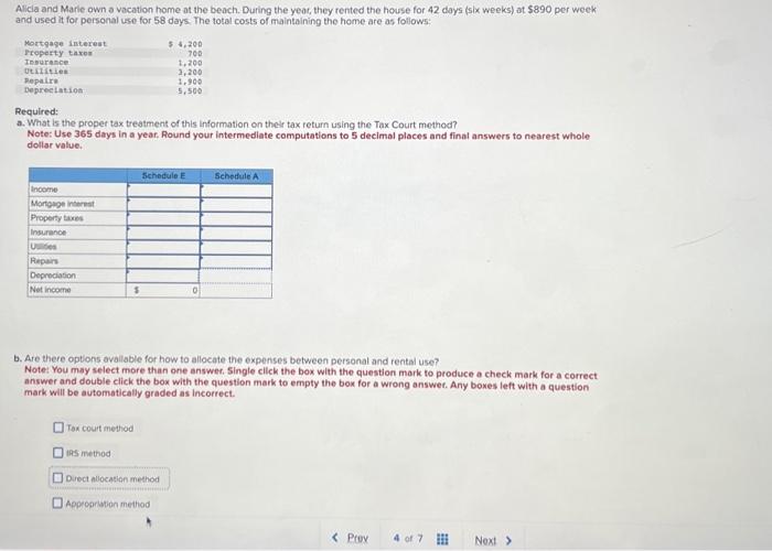 Solved Allcia and Marle own a vacation home at the beach Chegg com