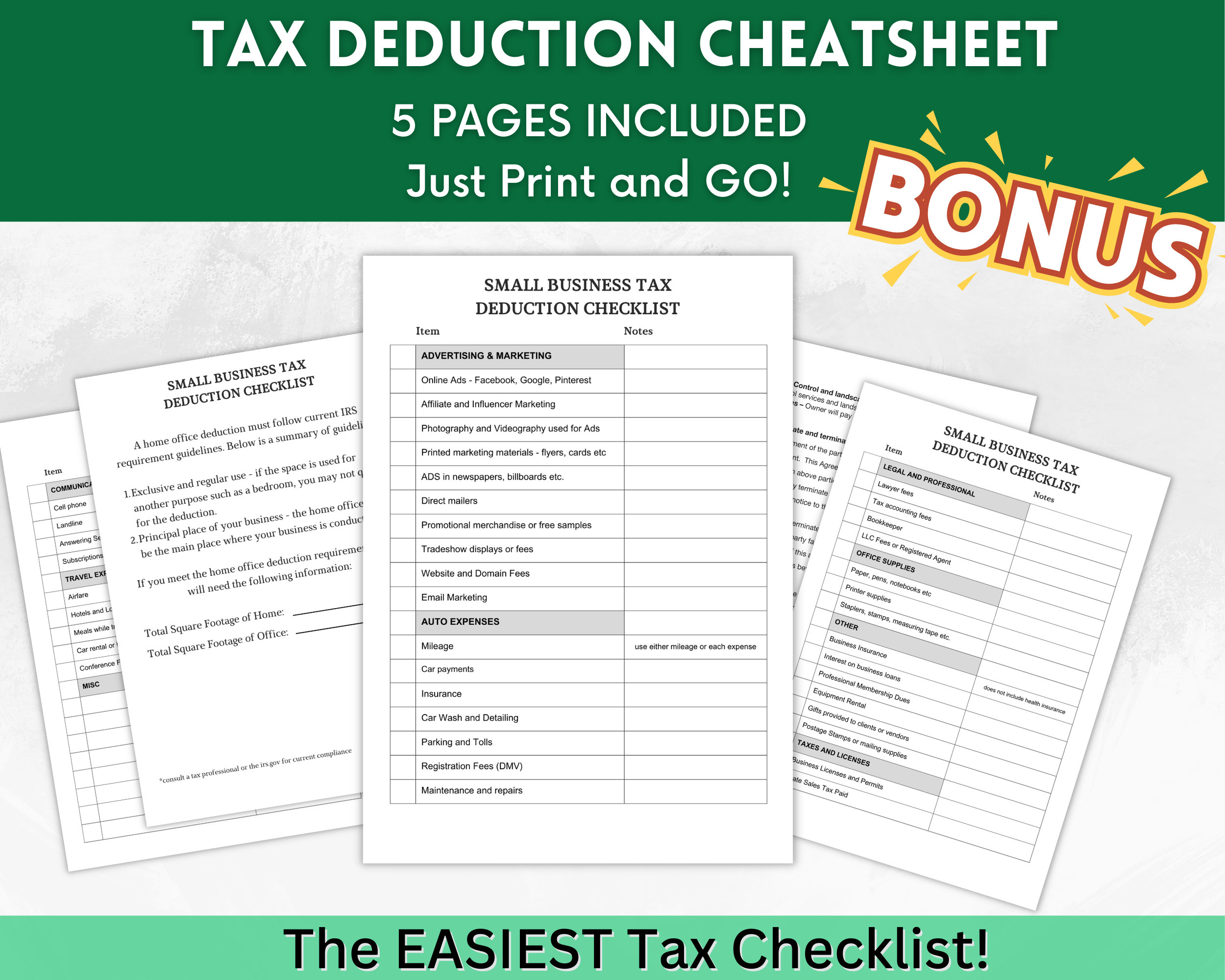Tax Deduction Spreadsheet Excel Tax Planner Tax Organizer Small