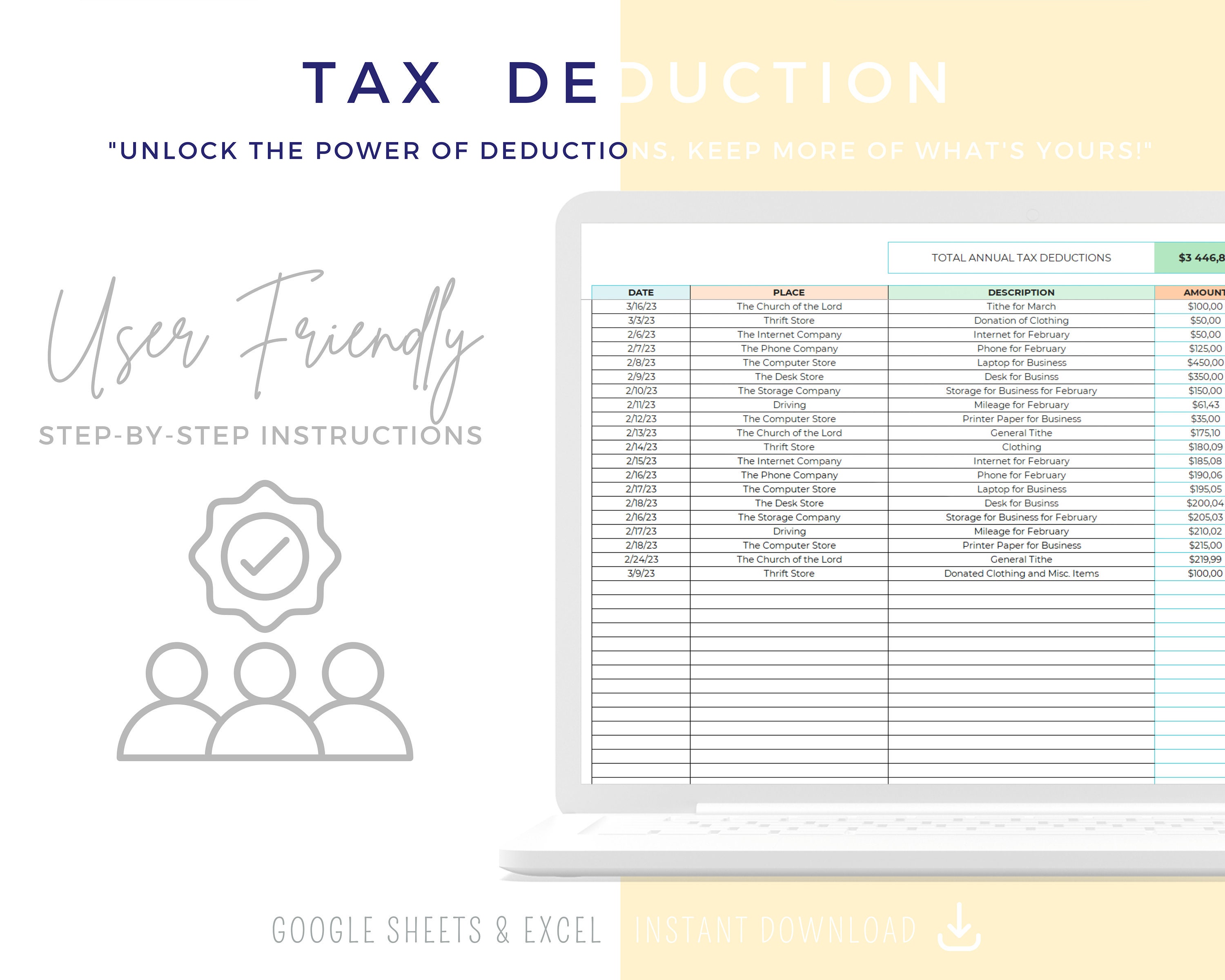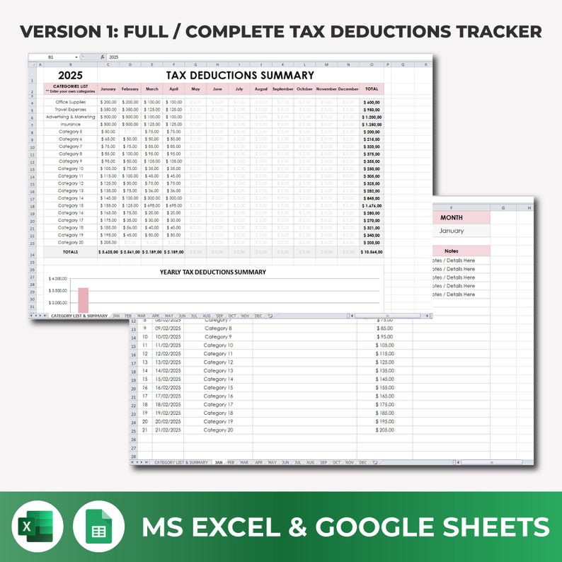 Tax Deduction Tracker Template for Excel Google Sheets tax Deduction