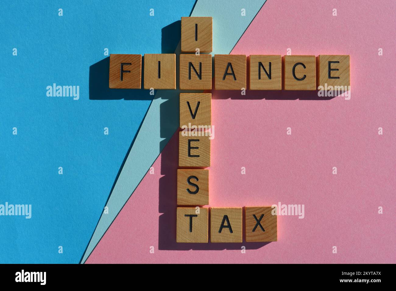 Finance Invest Tax words in wooden alphabet ketters in crossword