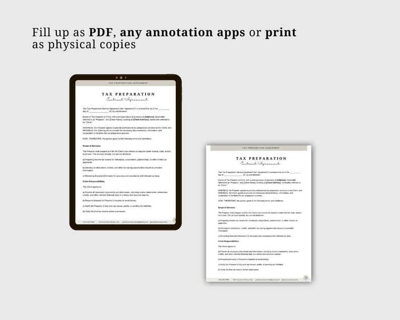 Editable Tax Preparation Contract Template Freelance Tax Preparer