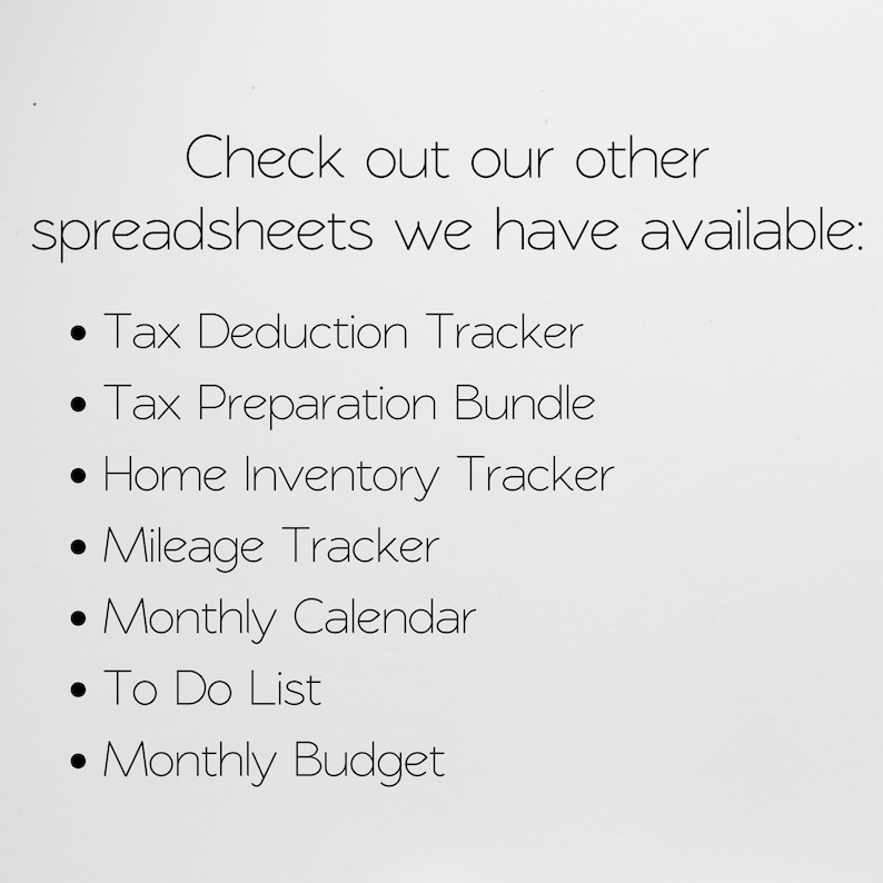 Tax Deduction Spreadsheet Template Etsy