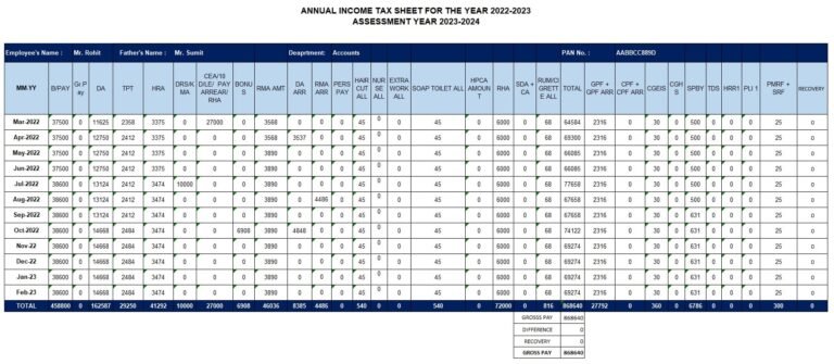Annual Income Tax Sheet For The Year 2022 2023 (Assessment Year 2023 2024)
