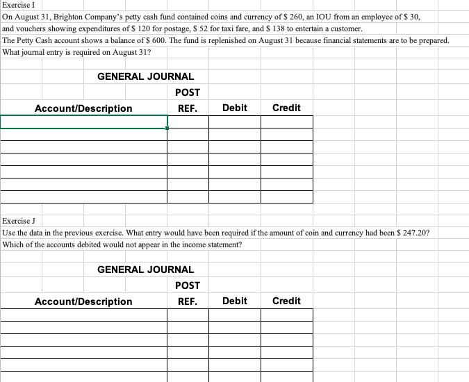 Solved Exercise On August 31 Brighton Company #39 s petty cash Chegg com