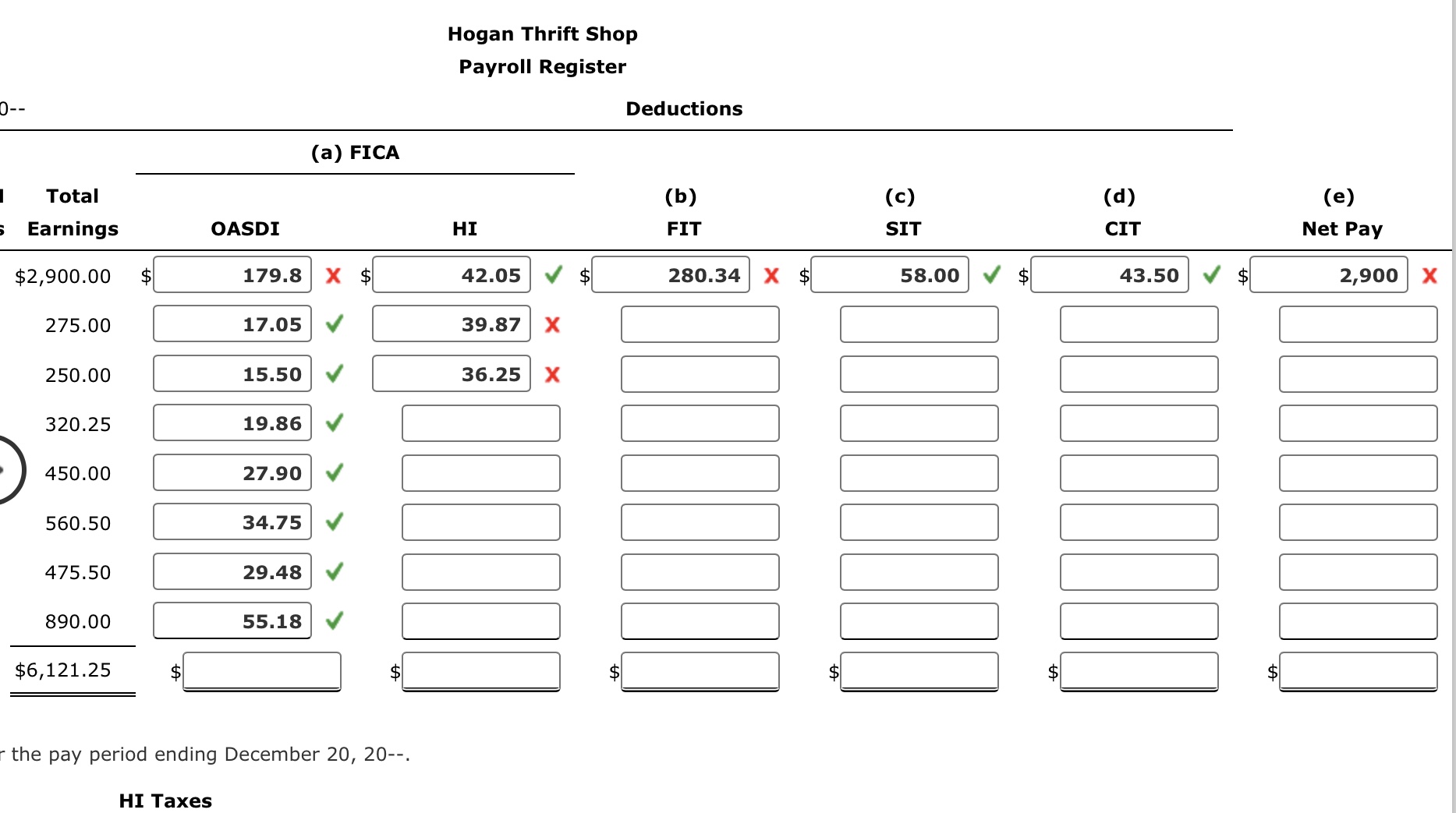 Solved the pay period ending December 20 20−− Hogan Thrift Chegg com
