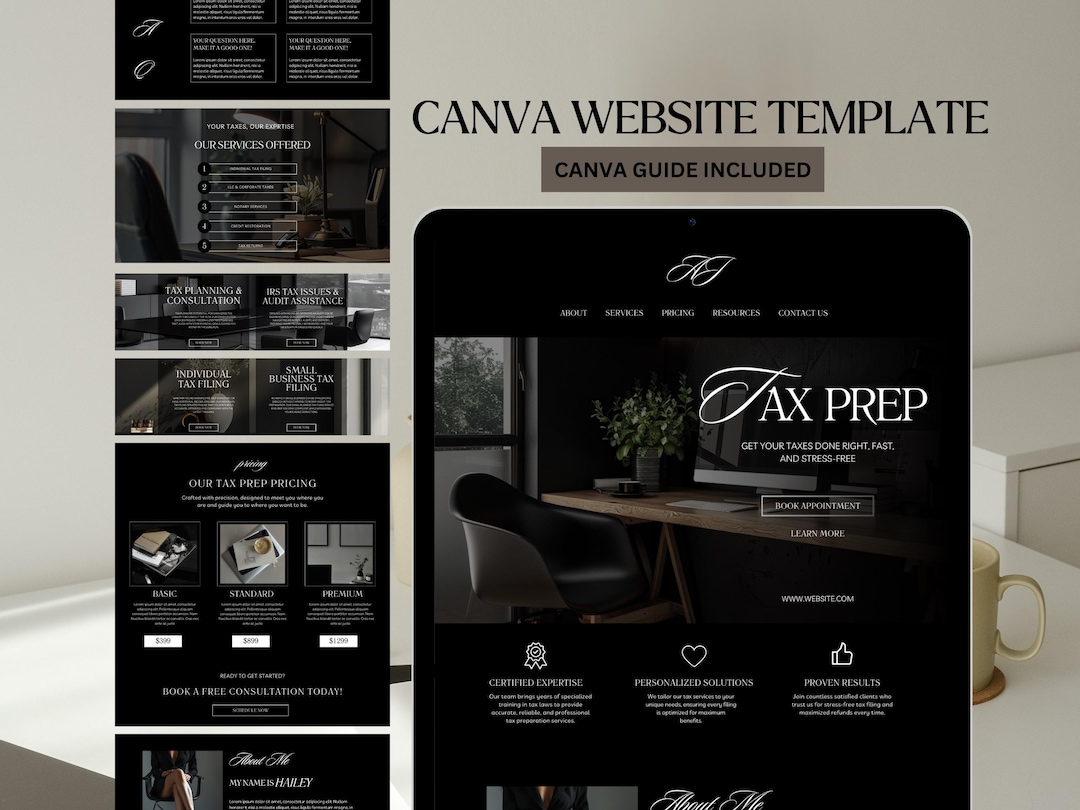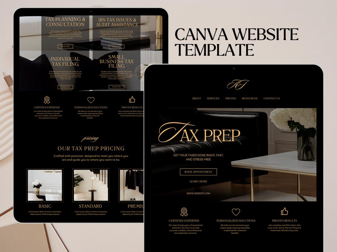 Tax Website Template Canva Tax Season Website Black Gold Aesthetic
