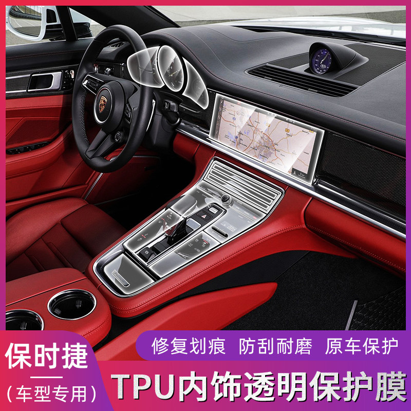 适用于保时捷卡宴内饰保护膜Taycan帕拉梅拉Macan中控屏幕钢化膜 虎窝淘