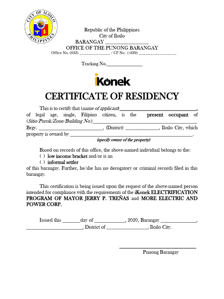 Certificate of Residency PDF Philippines