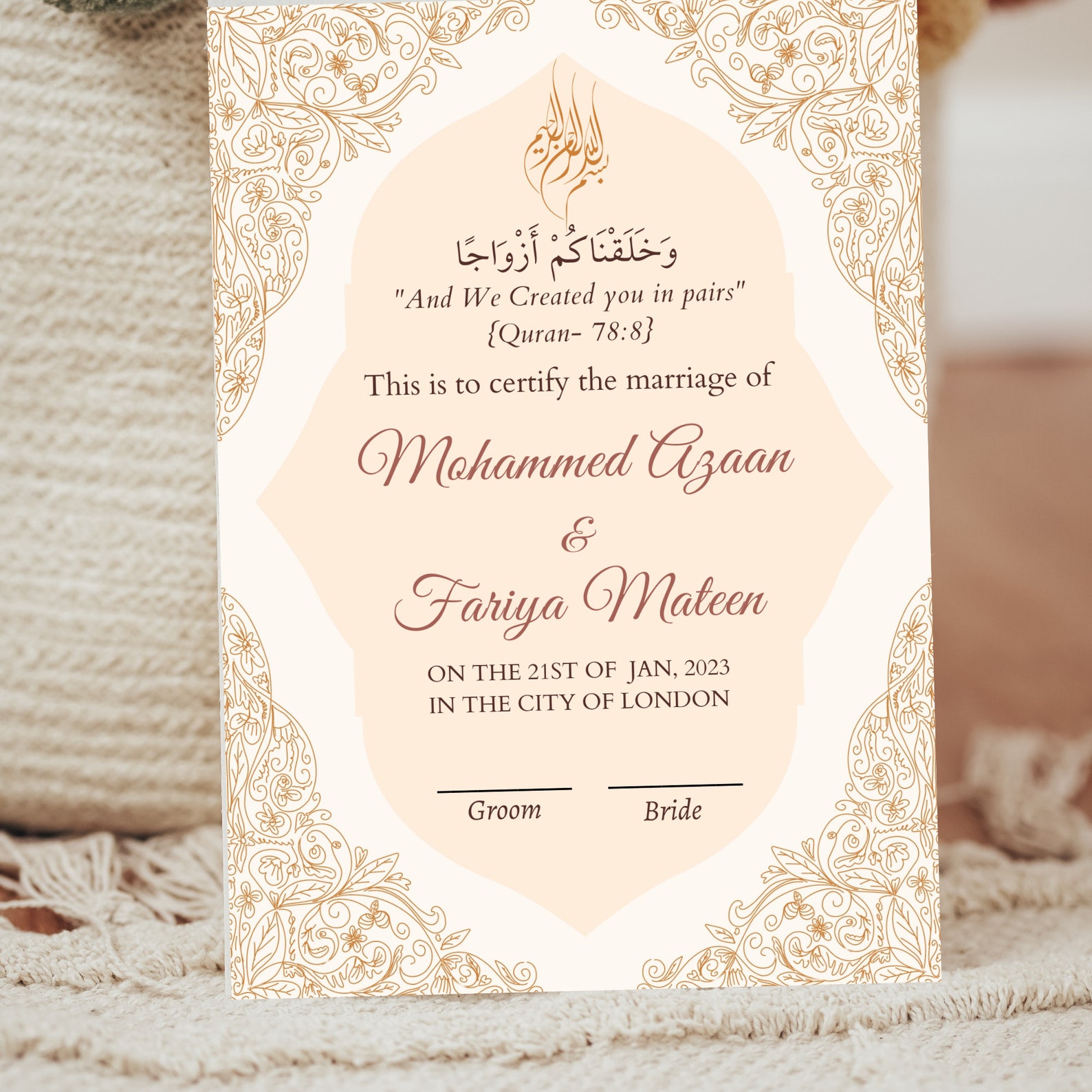 Nikahnamah Islamic Marriage Certificate Digital Desi Wedding Souvenir