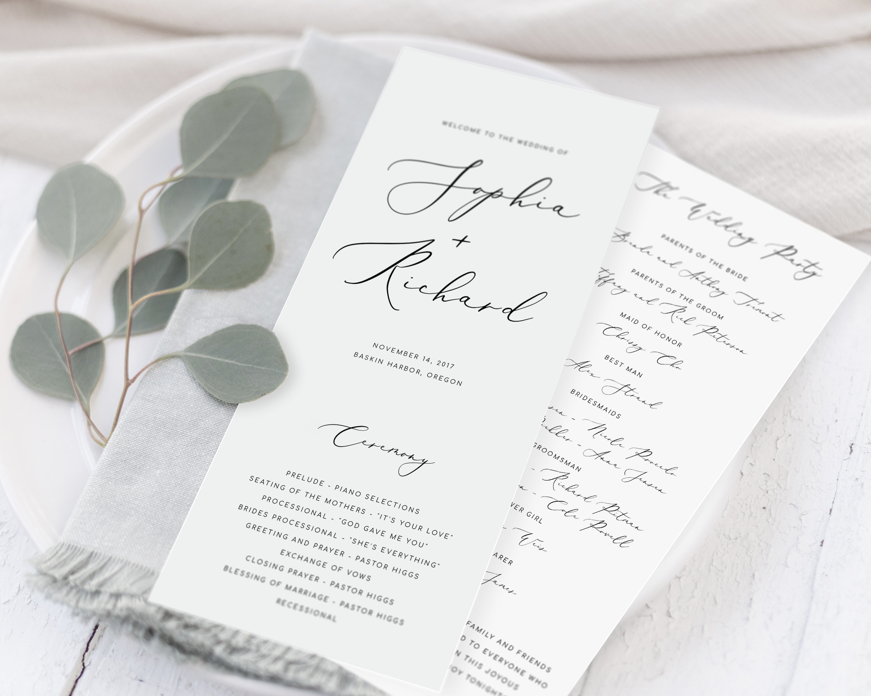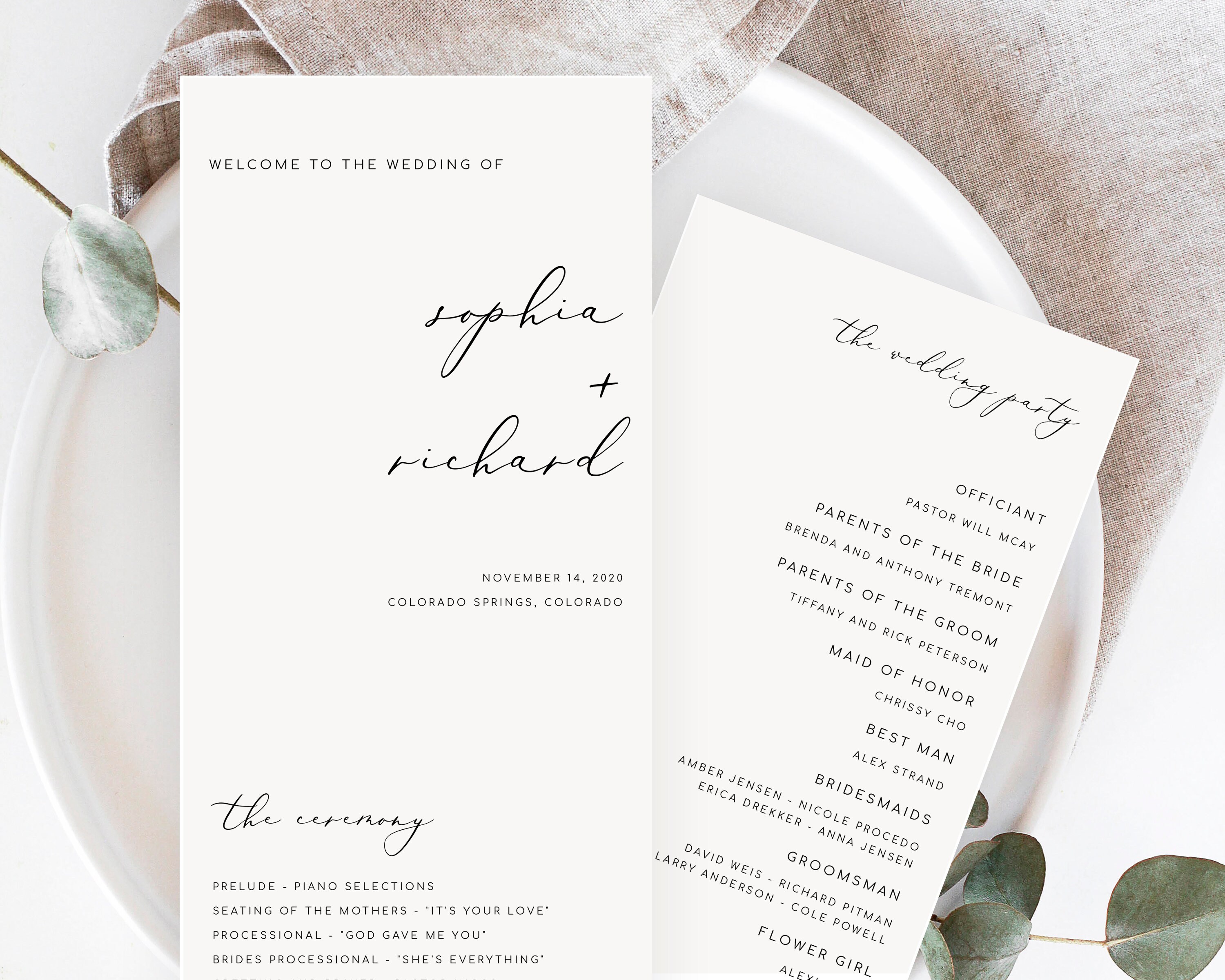 Modern Minimalist Tea Length Wedding Program Template Simple Ceremony