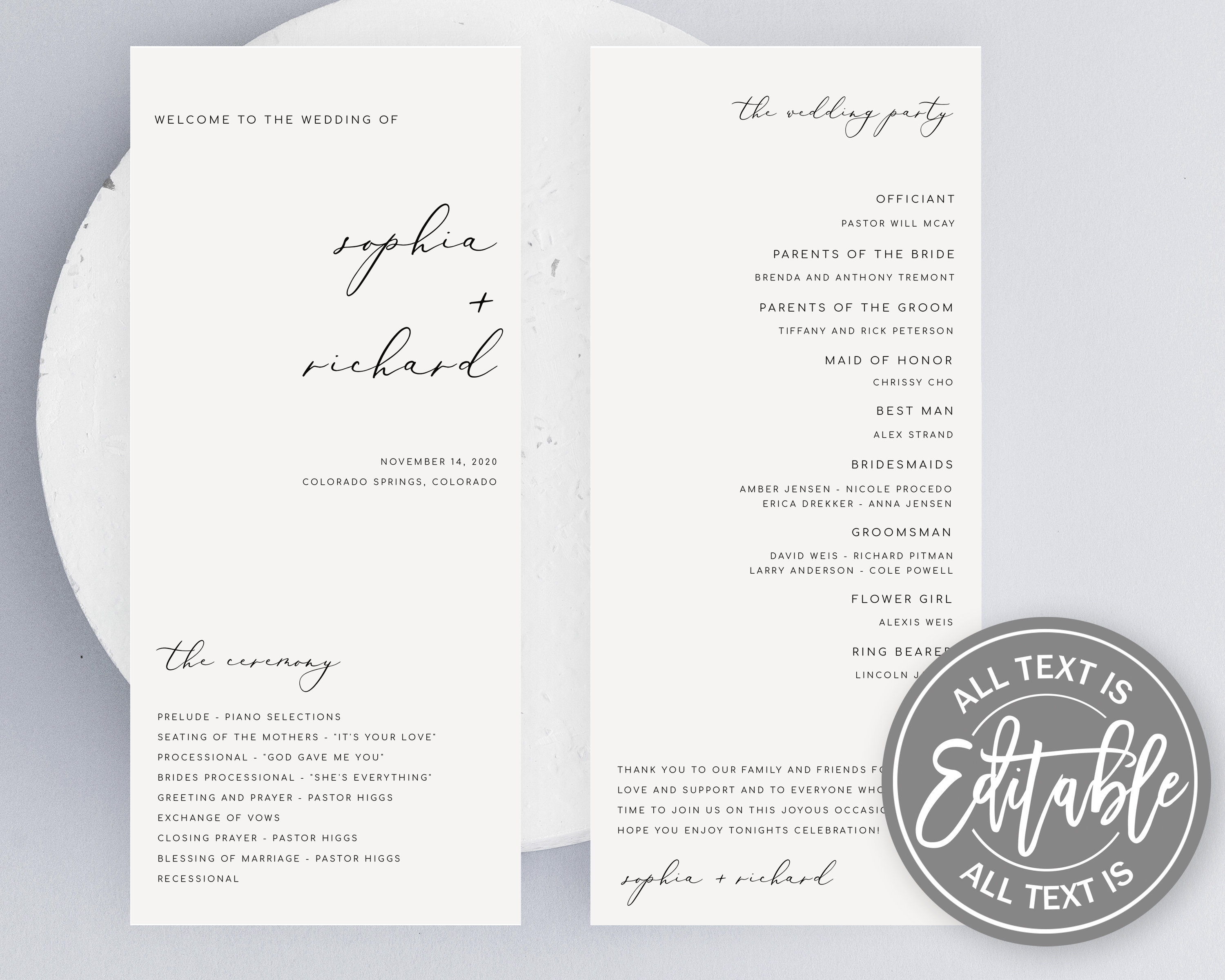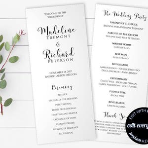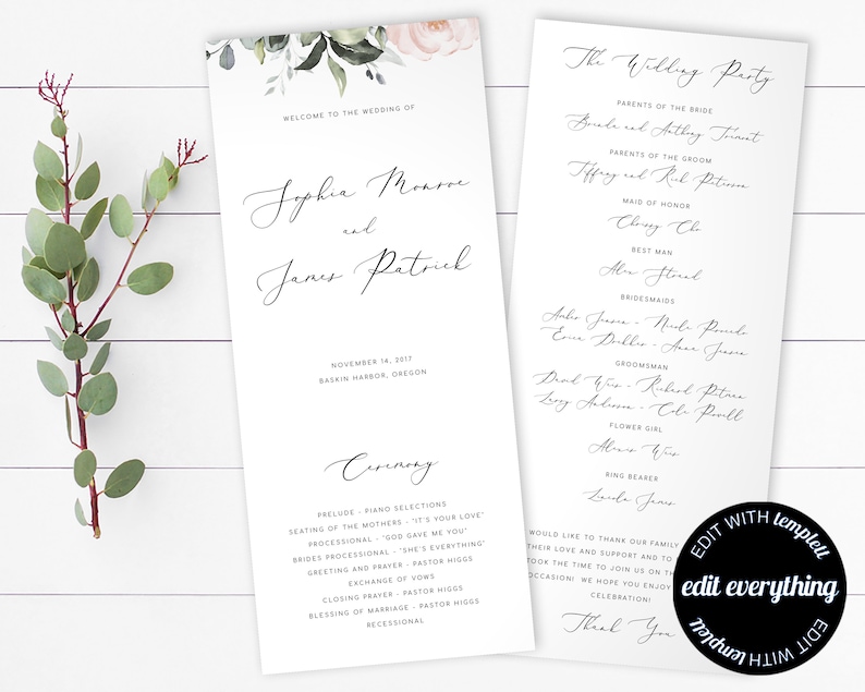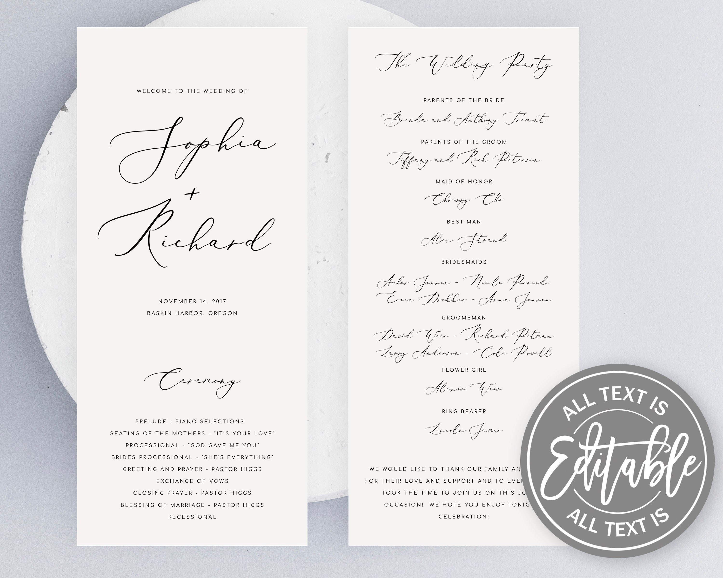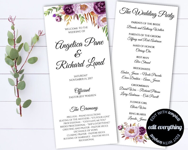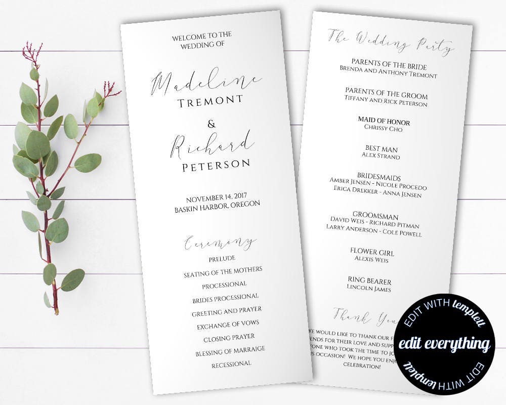 Wedding Program Template DOWNLOAD INSTANTLY Edit Yourself Elegant