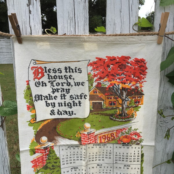 VTG 1972 Calendar Towel Kitchen Printed Tea Retro Kitchen prints