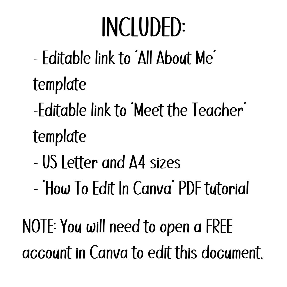 EDITABLE Meet The Teacher Template All About Me Template Back To