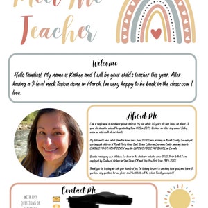 All About Me Teacher Template Meet the Teacher Template All Etsy