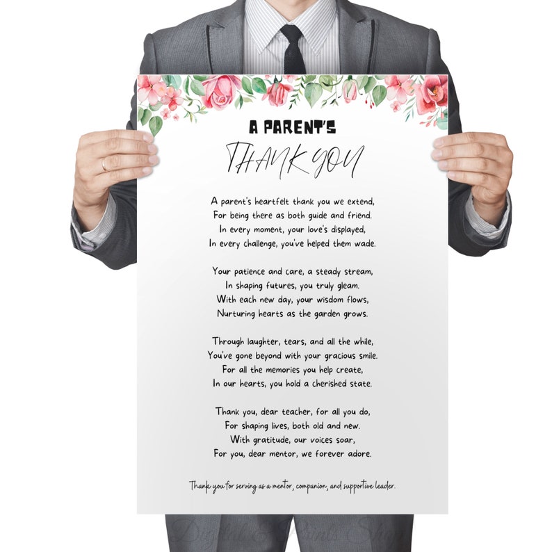 Teacher Appreciation Poem Printable Parent #39 s Thank You Gift End of