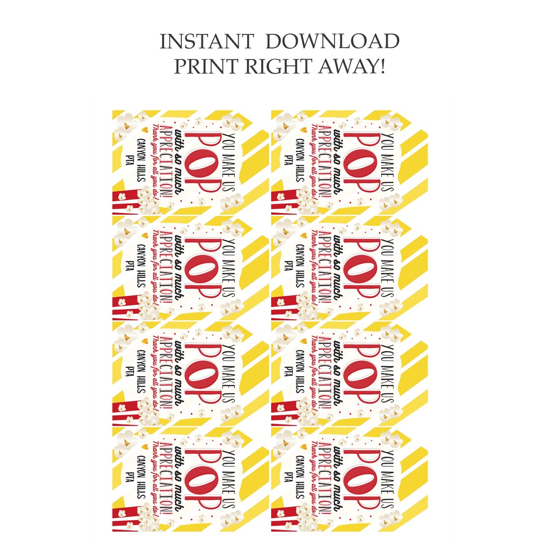 Popcorn Teacher Appreciation Gift Popcorn Tag Printable Popcorn