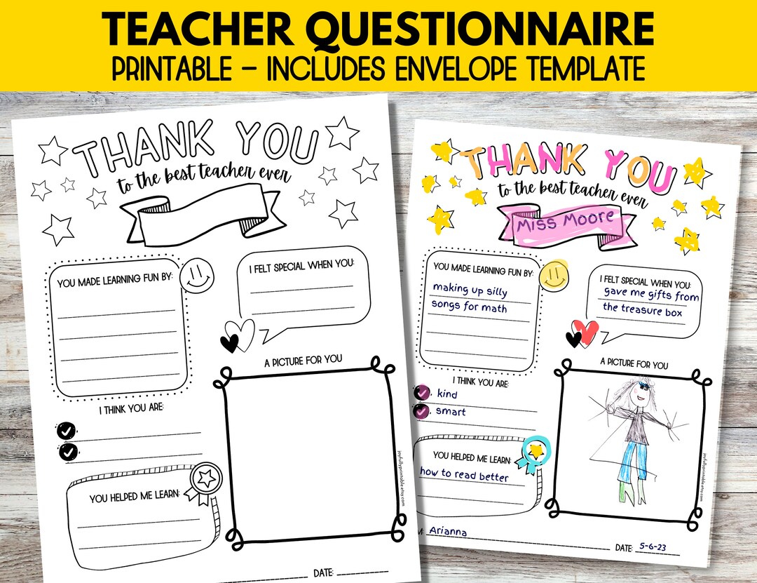 Teacher Appreciation Questionnaire Printable Teacher Etsy