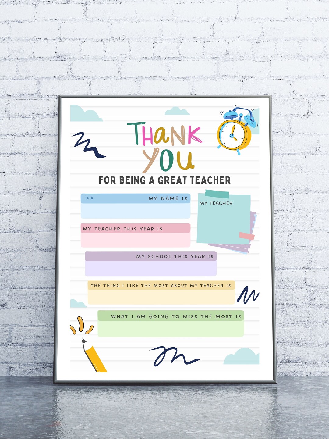 Teacher Appreciation Card Fill in the blank Thank You (digital