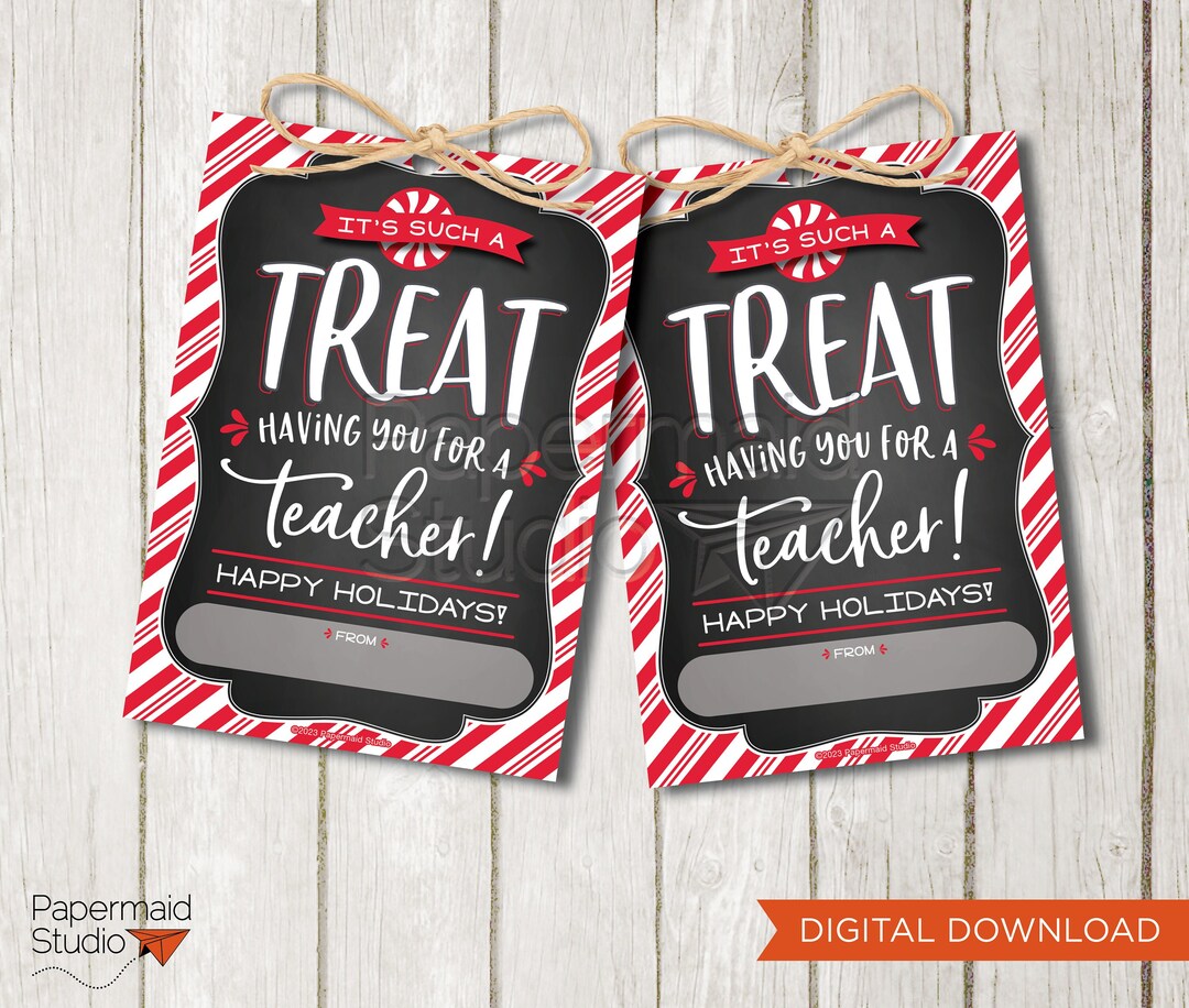 Teacher Christmas Gift Tag Printable Christmas Treat Tags Teacher Thank