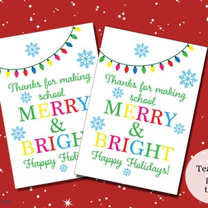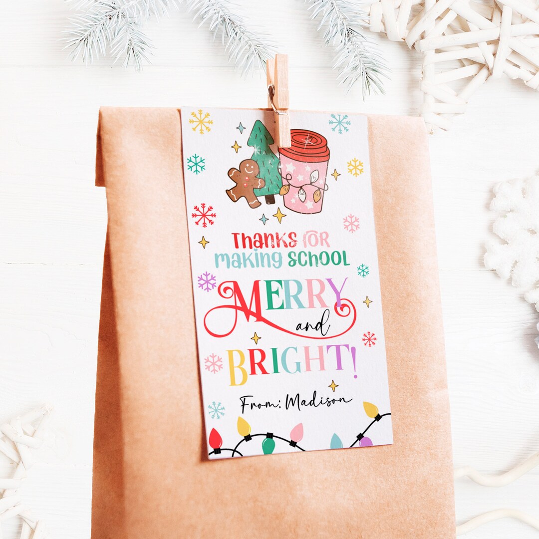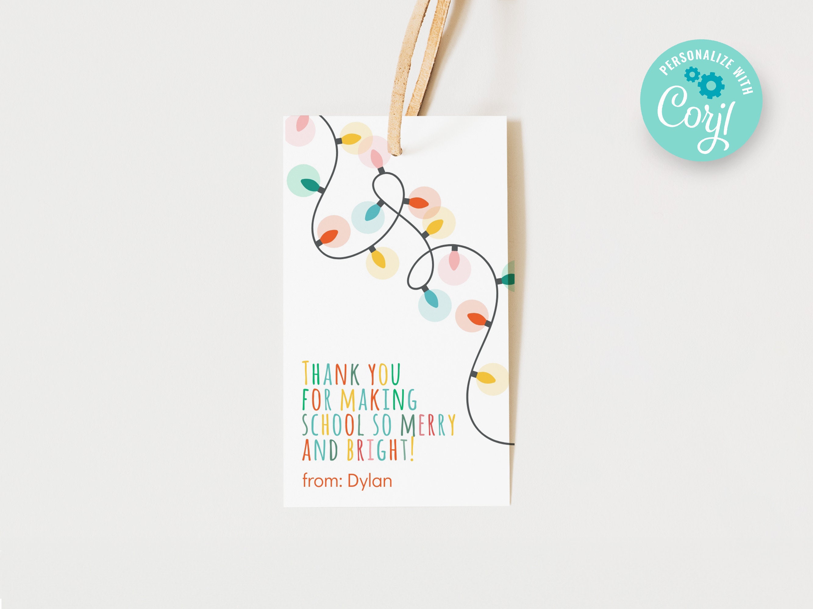 Christmas Teacher Gift Tag Merry and Bright Tag for Teacher Etsy