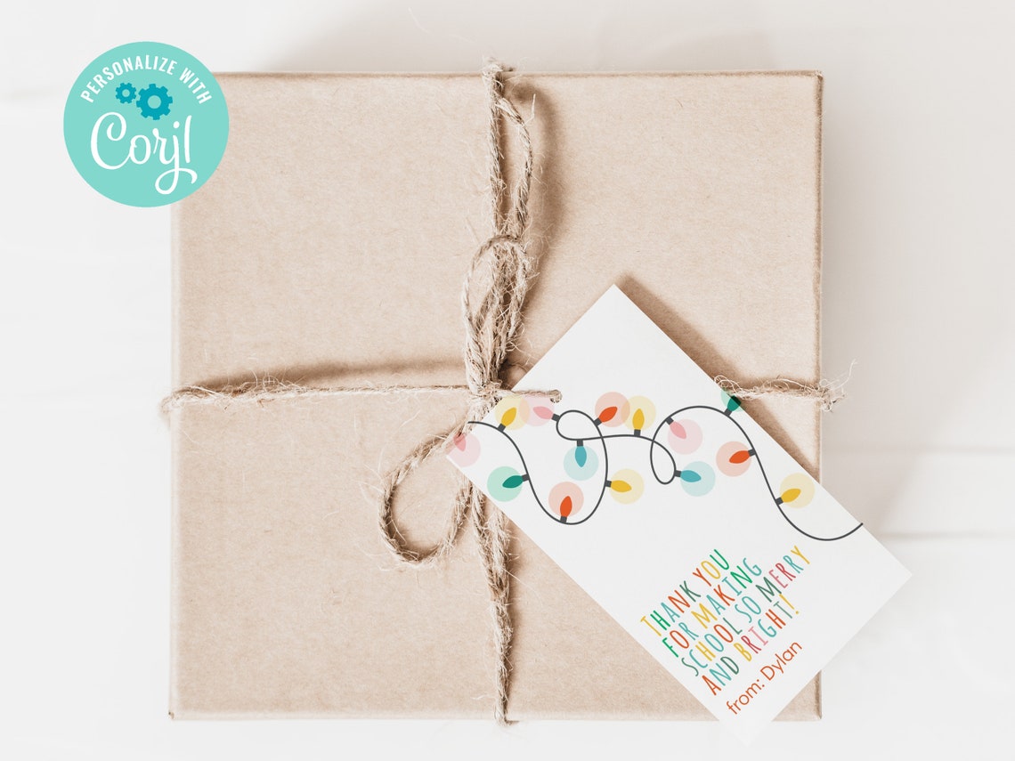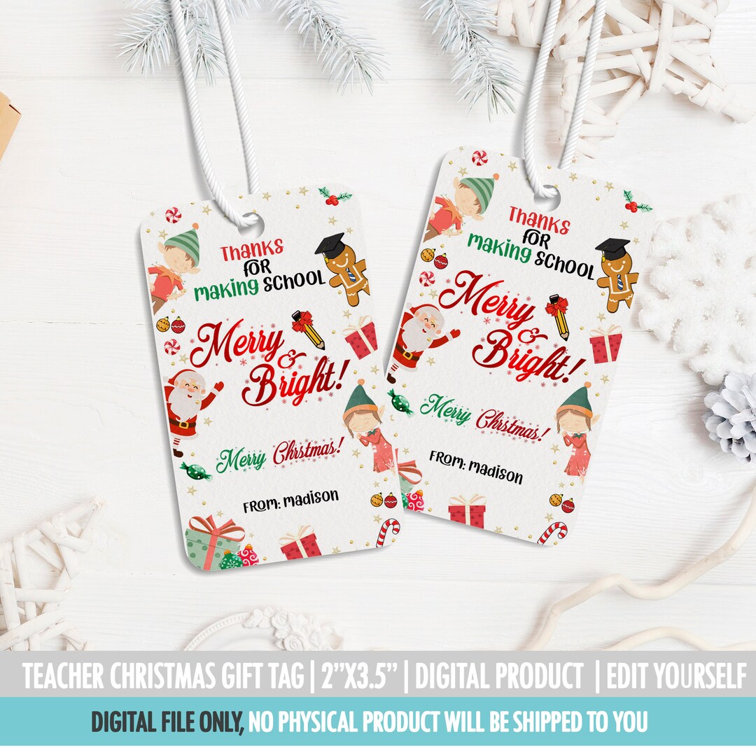 Editable Teacher Christmas Gift Tag Christmas Thank You Merry Bright