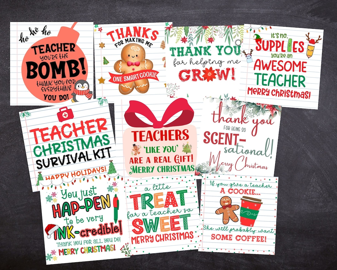 Teacher Christmas Gift Tags Printable Teacher Appreciation Etsy