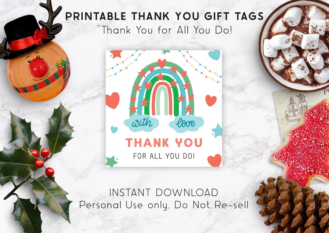 Printable Teacher Gift Tags Christmas Teacher Gift Rainbow Etsy