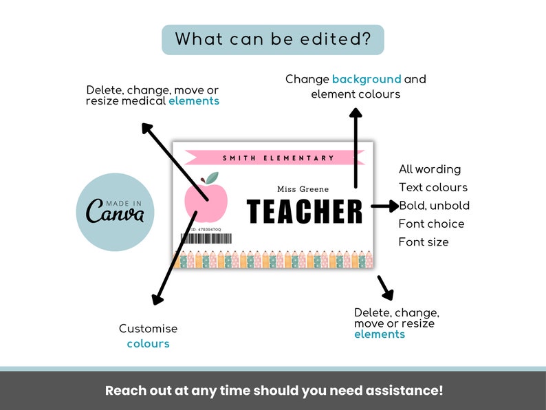 Customizable Teacher ID Card Template School Name Badge Etsy