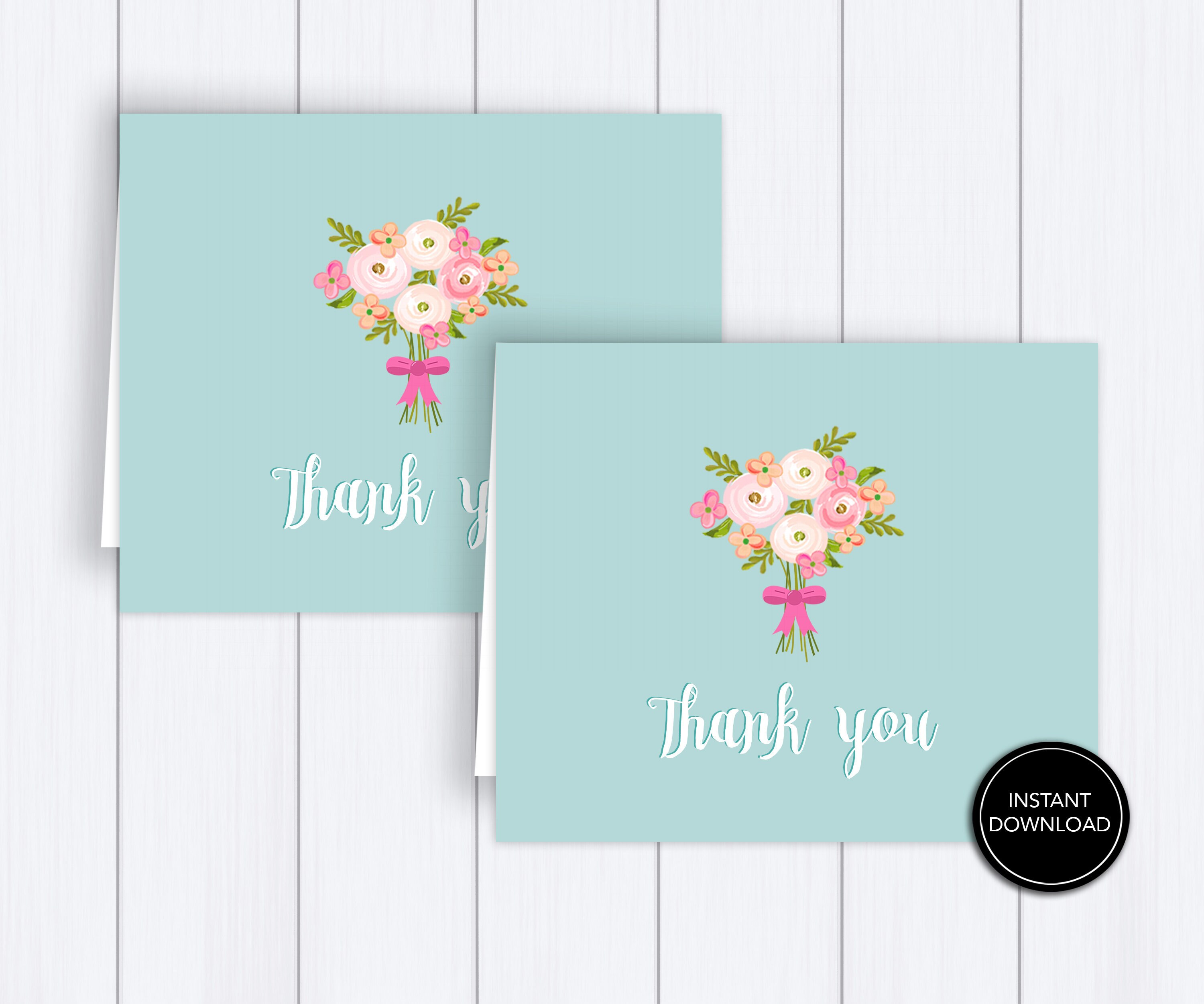 INSTANT DOWNLOAD Thank You postcard Printable Note Cards Greenery thank