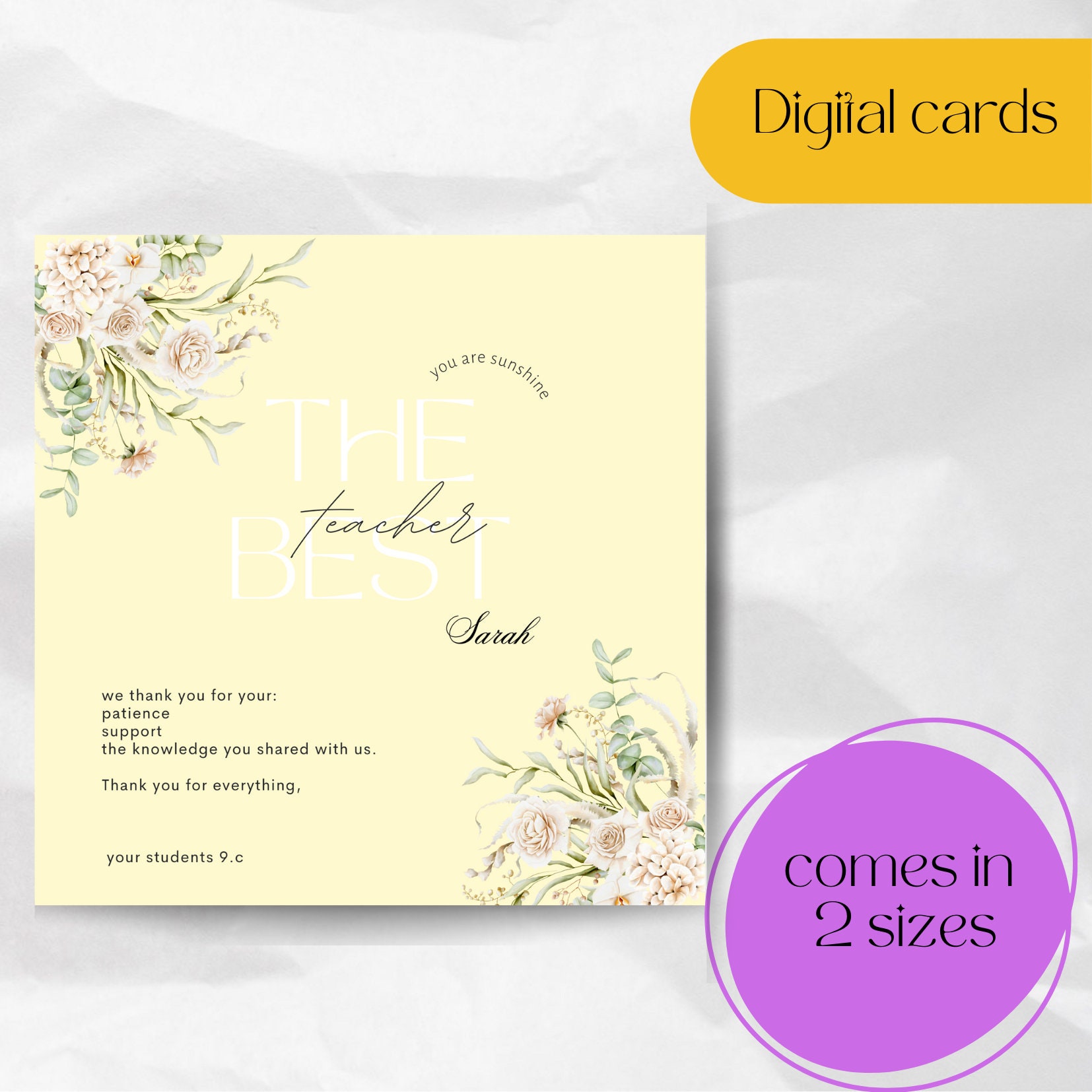 Teacher Thank You Cards Printable Printable Teacher Greeting Etsy