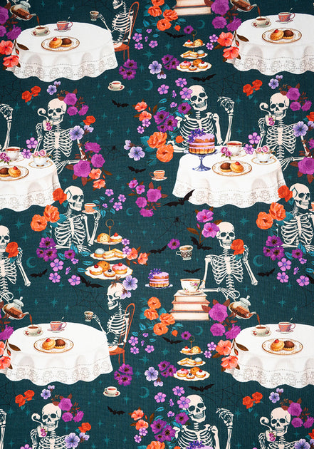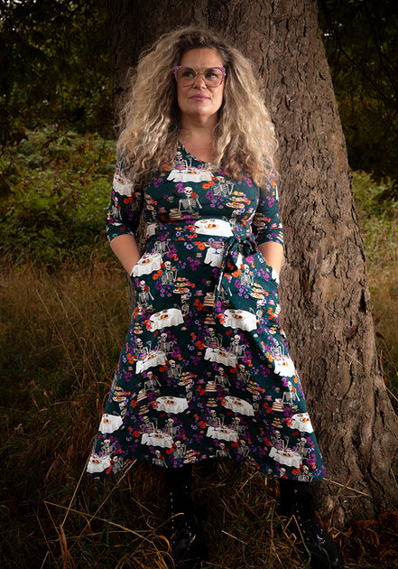 Grizelda Skeleton Tea Party Print Cotton Midi Dress Popsy Clothing