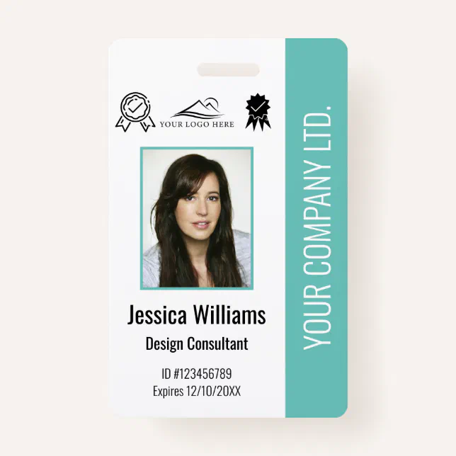Personalized Employee Photo Certification Teal ID Badge Zazzle
