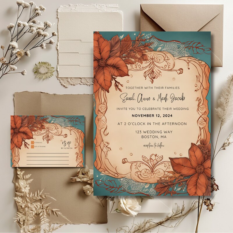 Teal wedding invitation x Artofit