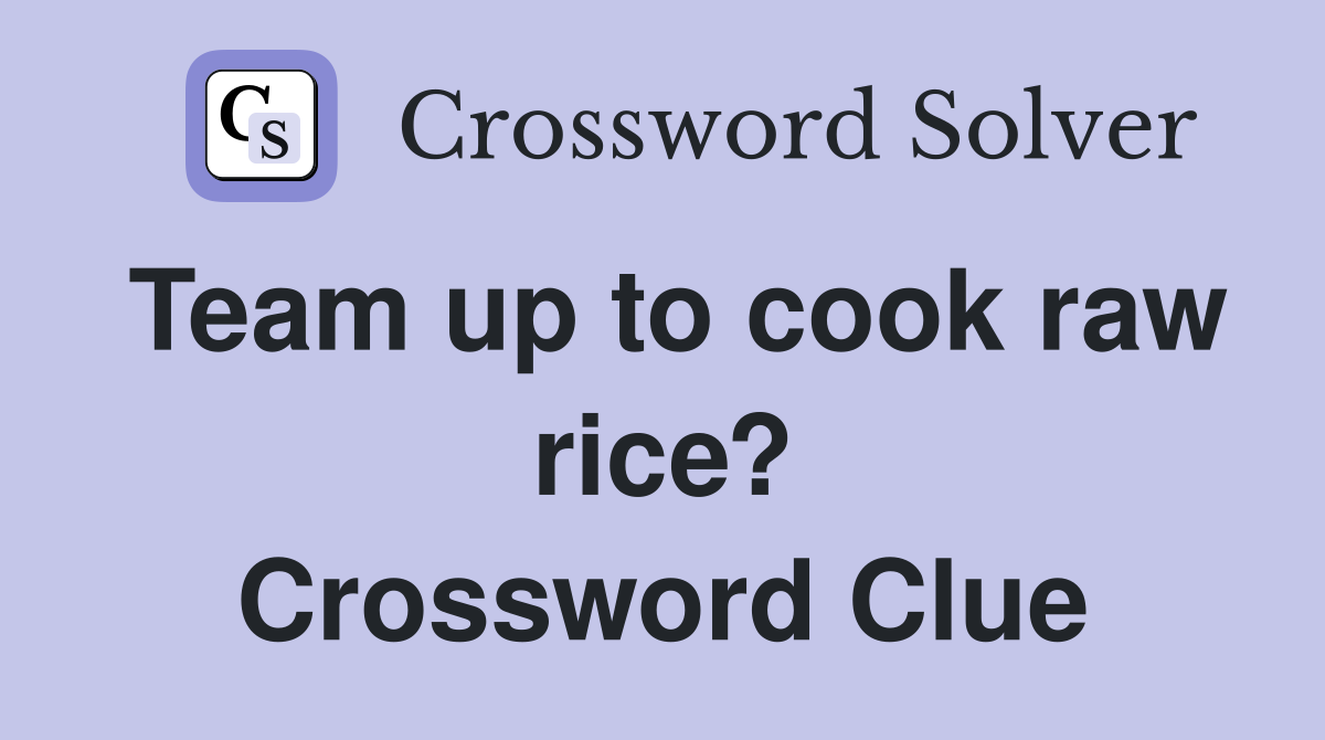 Team up to cook raw rice? Crossword Clue Answers Crossword Solver