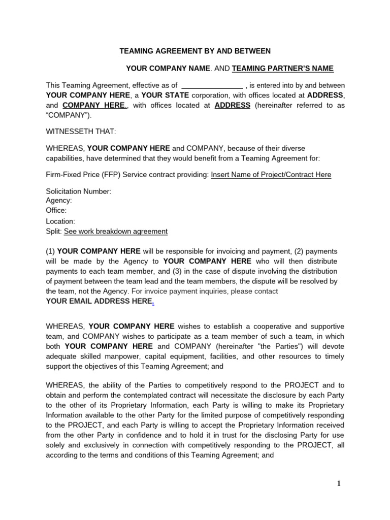 Contractor Teaming Agreement Template