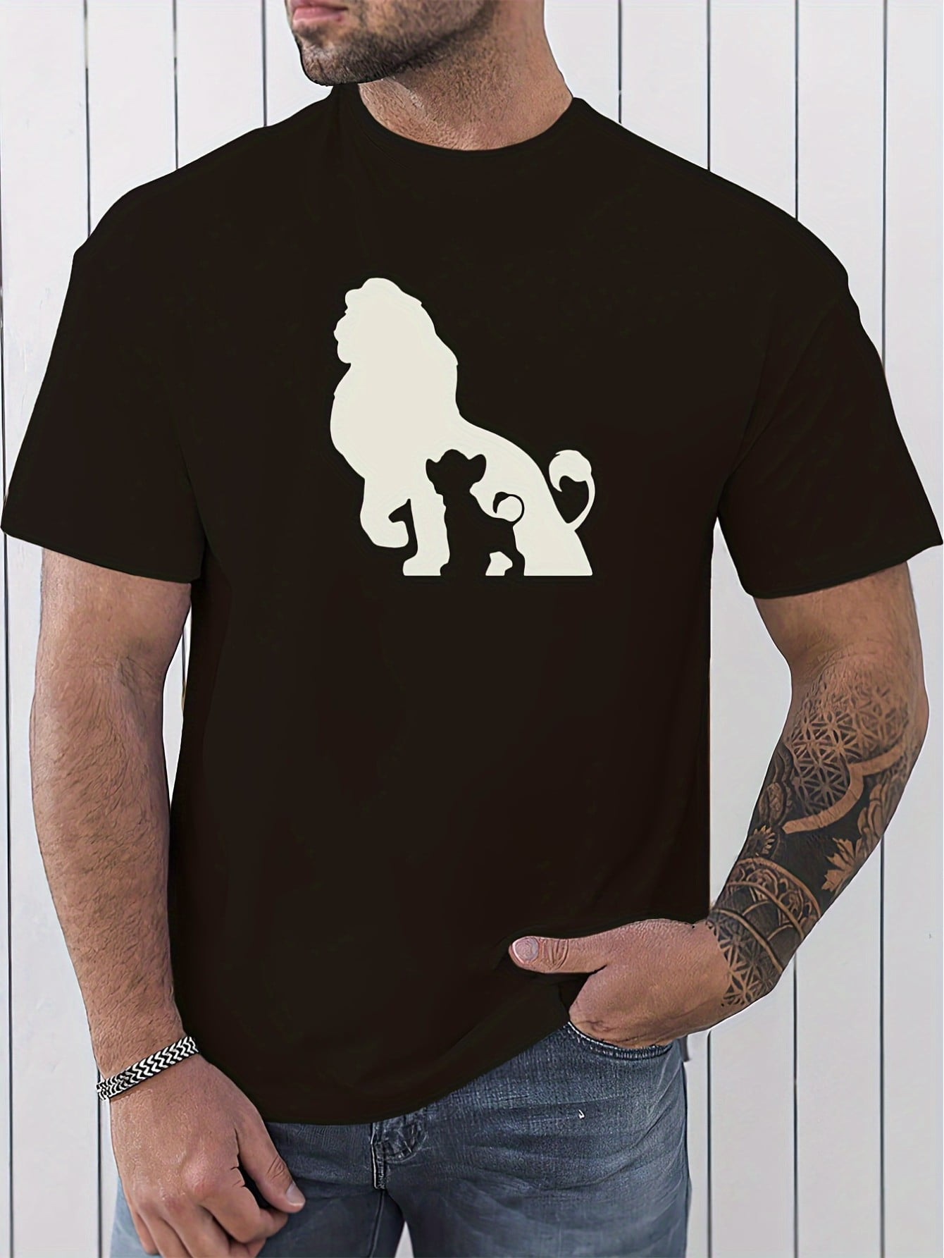 Graphic Tease Men #39 s Casual Athletic T Shirt with Lion Print Crew