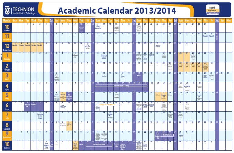 Technion Academic Calendar 2013 2014: A Visual Representation of the