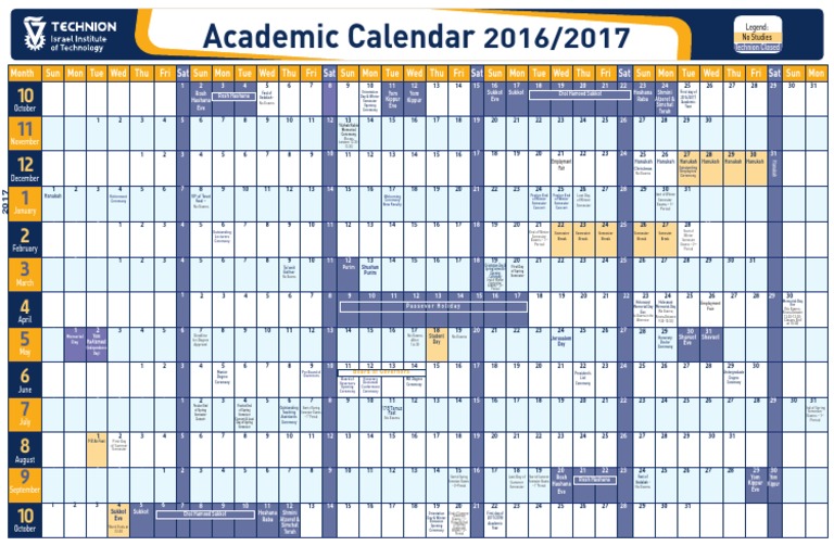 Technion Academic Calendar Eng 2016 2017 PDF Sukkot Academic Term