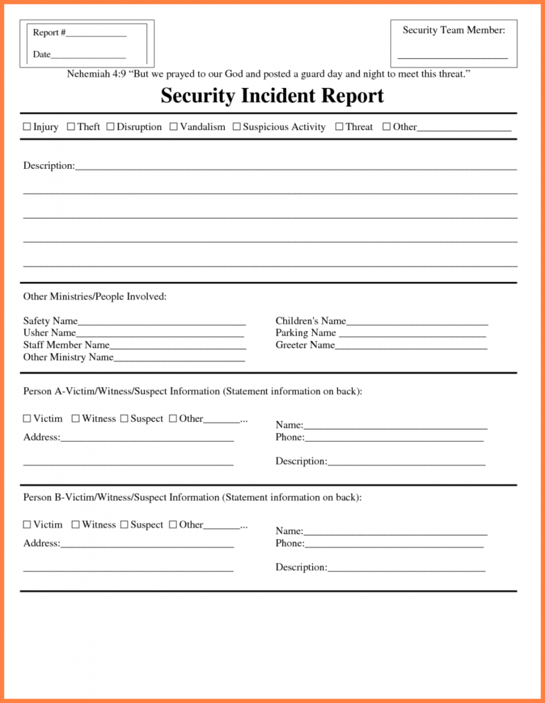 Technology Incident Report Template And Incident Report Template for