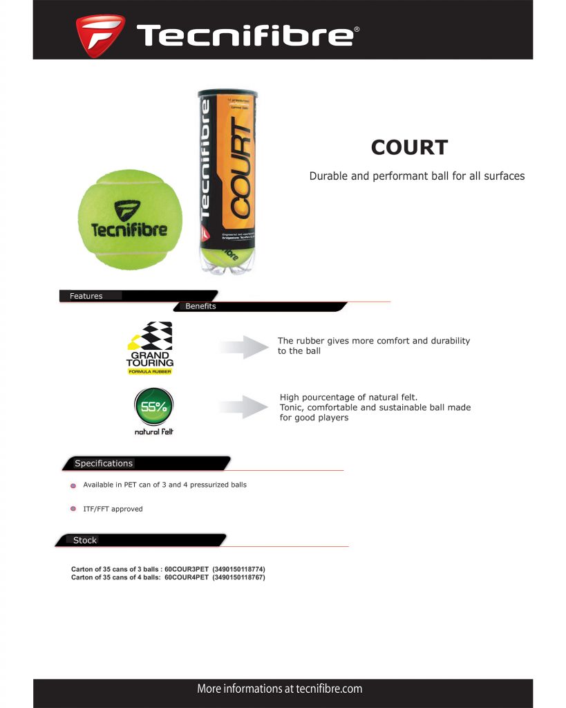 テクニファイバー Tecnifibre テニスボール COURT(コート) 4球入 1缶 TBA4CT1 メーカー テクニファイバー